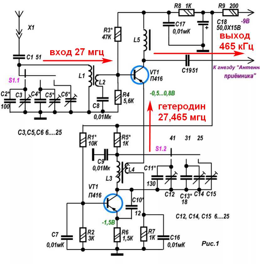 Это будет связной супергетеродин 27 МГц с одной ПЧ = 465 кГц. ))
