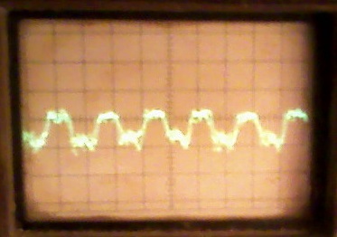 Я же просто взял сигнал 1 кГц с калибратора осциллографа и подал его на вход модулятора через интегрирующую цепочку. Установил в точке «А» такую картинку.
