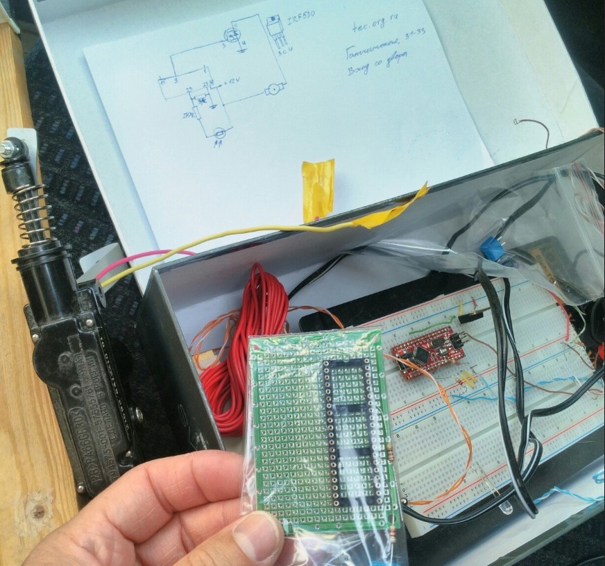 Пару денежных бумажек превратилась в запрограммированный контроллер и монтажную плату с проводками. Не знаю как это всё произошло, я говорил только, а получил каким-то образом работающий прототип.