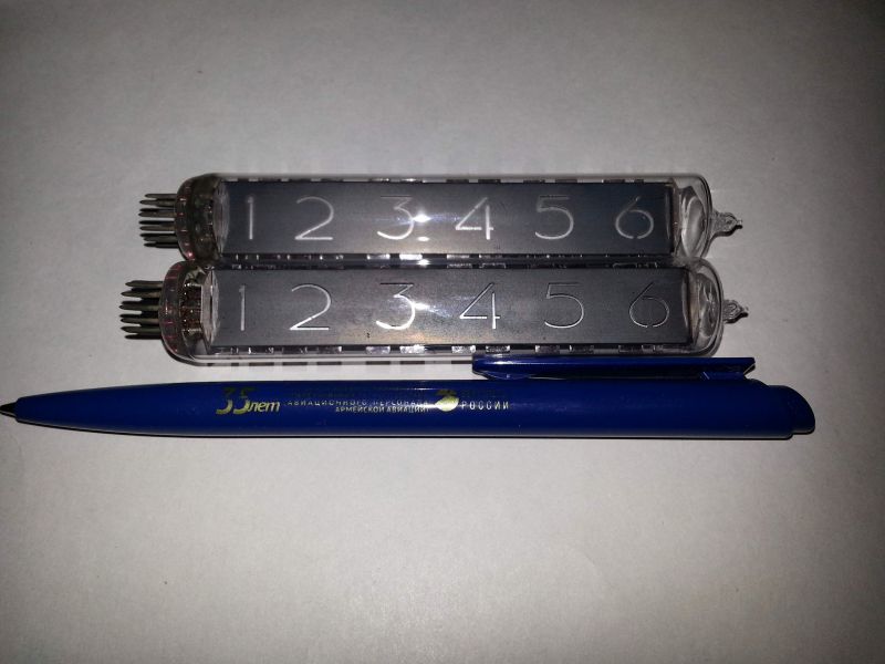 Попались в руки вот такие интересные ... прототипы? Скорее всего. Либо что-то, сделанное под конкретную задачу. Почему цифры от 1 до 6 -- непонятно. Для лифтов? Принцип индикации простейший, фигурная прорезь в аноде.