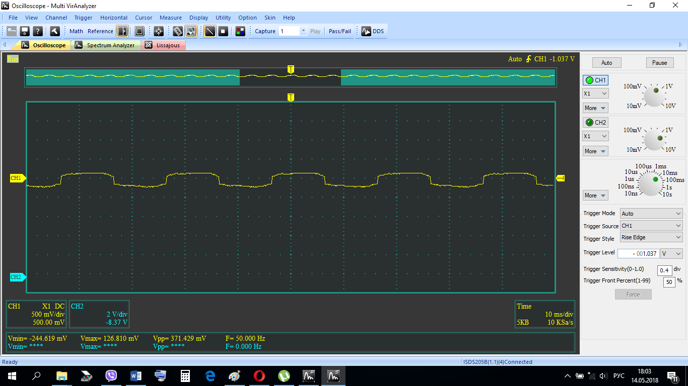 Ниже привожу скрины сигналов. (!) Все замеры с установкой на щупе осциллографа х10 . Щуп не откалиброван - не успел - поэтому вероятна погрешность измерений в районе 1,5-2 вольта.