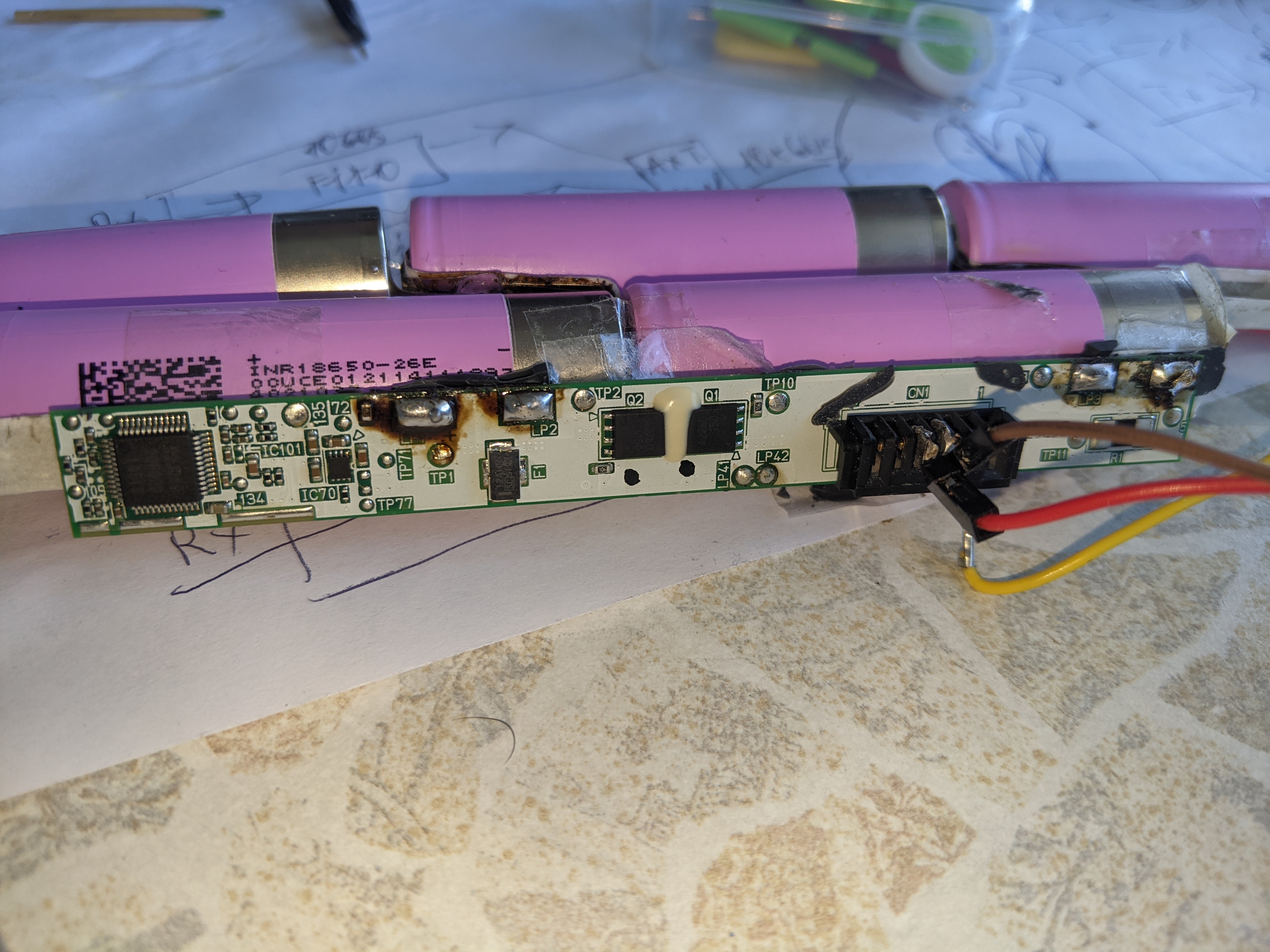 Имеется планшет Lenovo Yoga Tab 3 Plus YT-X703L. Аккумулятор очень сильно нагрелся и этом все. Разобрал. Внутри 3 элемента 18650 включены параллельно. Два из них с трещинами в металлической оболочке и с КЗ. Отключил все банки. Подключил только платку защиты к БП. По стрелочному миллиамперметру вижу что потребляемый ток прыгает 17-20 мА. Десяток раз в секунду. Если напряжение БП уменьшить до 2.77 В, то платка защиты отключает напряжение на выходе и включает при напряжении 2.98 В. Подключил разъем к плате планшета - ток успокоился, меньше 1 мА. Если отключить платку от планшета, потребляемый ток все еще меньше 1 мА. Если переподключить БП, то ситуация с прыгающим током повторяется. От БП с платкой планшет включился, но сразу написал что очень низкий уровень заряда 0% и планшет скоро отключится. Через 30 секунд он сам штатно завершил работу. Нашел аккумуляторы 18650 с правильной химией, т.к. максимальное напряжение заряда 4.35 В. Для начала подключил только 1 разряженный элемент и поставил выключенный планшет на зарядку от обычного ЗУ (не родного). Специально, в целях безопасности, чтобы ток ограничился 0.5 А. Была маленькая надежда что в процессе зарядки он поднимет уровень хоть на пару процентов. За весь день аккумулятор зарядился до 4.35 В, но заряд все еще 0%. Продержал на зарядке еще один день, но ничего не изменилось. Включил планшет, через какое-то время (до получаса) он написал что зарядка завершена, но все еще 0%. Несколько часов продержал с родным ЗУ. Не помогло. При отключении кабеля ЗУ, так же пишет что низкий заряд и отключается через 30 секунд. Если в момент зарядки включенного планшета отстегнуть шлейф АКБ, то планшет сразу пишет "Зарядка приостановлена. Слишком низкая температура аккумулятора." и завершает работу через 3 секунды. Подключил БП напрямую к плате, без платки защиты. Сразу обратил внимание что в момент загрузки пиковый ток увеличился до 2 А, с платкой был 1.2 А. Планшет загрузился, показал не нулевой уровень заряда, но в настройках пропал раздел "Батарея". При подключении ЗУ, пишет про низкую температуру АКБ и отключается. Если планшет выключен, то показывает батарею с восклицательным знаком. Зарядка не идет. Если на включенном планшете по-горячему подключить шлейф с платкой защиты, то через 30 секунд происходит перезагрузки и далее как обычно - 0%. На платке защиты установлен контроллер bq27541 https://e2e.ti.com/cfs-file/__key/commu ... F00_DS.pdf На странице 36 есть схема его включения. Предохранитель целый. Терморезистор исправен, сопротивление 10.2 кОм. На другом форуме нашел информацию что при проблемах с терморезистором всегда показывает 50%. Еще нашел информацию что нескольким людям для выхода из режима 0% помогло кратковременное отпаивание банок от платки защиты. Но это тоже не мой случай. Если платка защиты не подключена к планшету, то на шине i2c напряжение по 0.8 В, HDQ - ноль, питание 2.5 В присутствует. Из всего этого могу предположить что связь с планшетом или по i2c или по HDQ есть, батарея определяется правильно, но или просто слетела калибровка или контроллер заблокировался (но почему тогда идет зарядка?). Погуглил. Работать с контроллером можно через bqStudio и ev2400. Последнего у меня нет. Покупать ради одного ремонта (для знакомых) или делать самому (контроллер $10 плюс куча мелочевки) нет смысла. Какие еще есть варианты по восстановлению АКБ с этим контроллером? Колхозить с зарядкой через TP40