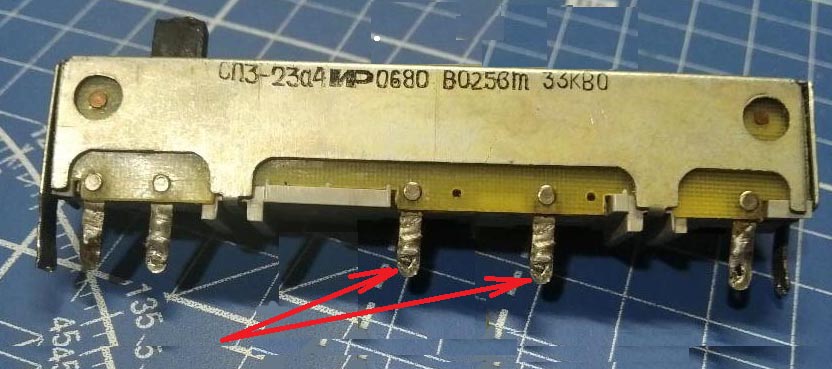 Кстати. тут надо обращать внимание не только на сдвоенный он или одинарный. Есть ли в нем средняя точка или нет, но еще и к какой группе он относится А или Б или B Ваш выпаянный - В , то-есть с обратно-логорифмческой зависимостью сопротивления, а заказанный А - линейный.