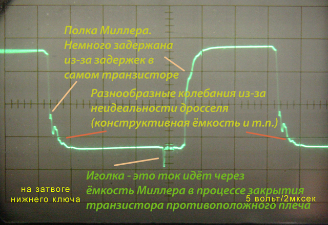 Да, иголки "вниз", что на затворах, нужно купировать установкой диодов Шоттки между затвором и истоком транзистора. Потому что эти иголки плохо влияют на IR (в аппнотах прямо указано на такую необходимость).