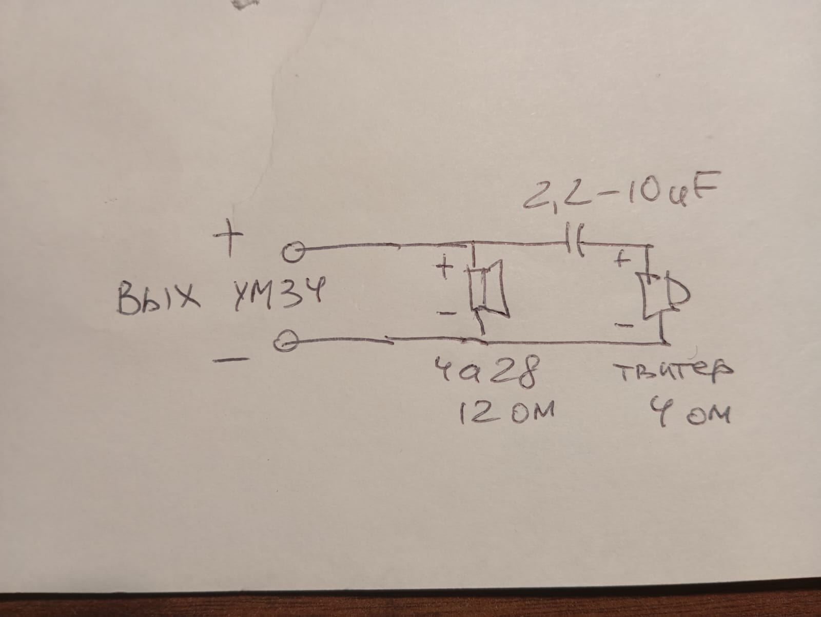 Добавлено after 6 minutes 26 seconds: там еще можно фазой поиграть , но это какие то тонкие материи. я только наслух могу методом пробы. В оригинальной акустике от этих корпусов там "сч и вч" были последовательно подкл в противофазе с НЧ через кондер 3.3u или типа того, гляну позже.