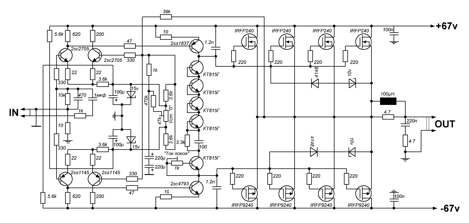 Максим_В вы были правы. не напрягаясь спаял усилитель за пол дня врубил через резисторы выставил ноль на выходе. выходных транзисторов мощных у меня нет нужно заказывать пока без них но ток покоя не получается настроить на резисторах ноль. самое интересное подал на вход сигнал усилок заработал причём достаточно чисто учитывая то что он не доделан. первый раз такое пред идущие усилители ни в какую не хотели работать с первого раза тем более не доделанные. интересно ток покоя можно выставить меряя напряжения на резисторах 25 26? эта штука мне определёно нравится играет себе тихонько вк нет цепочку цобеля забыл поставить однако работает. может и вылезут проблемы когда подам полное напряжение но наврят ли. кстати тут кто-то писал что в схеме есть ошибки неправильно указан тип транзистора вместо КТ209 КТ208. я собрал по схеме из журнала всё работает.