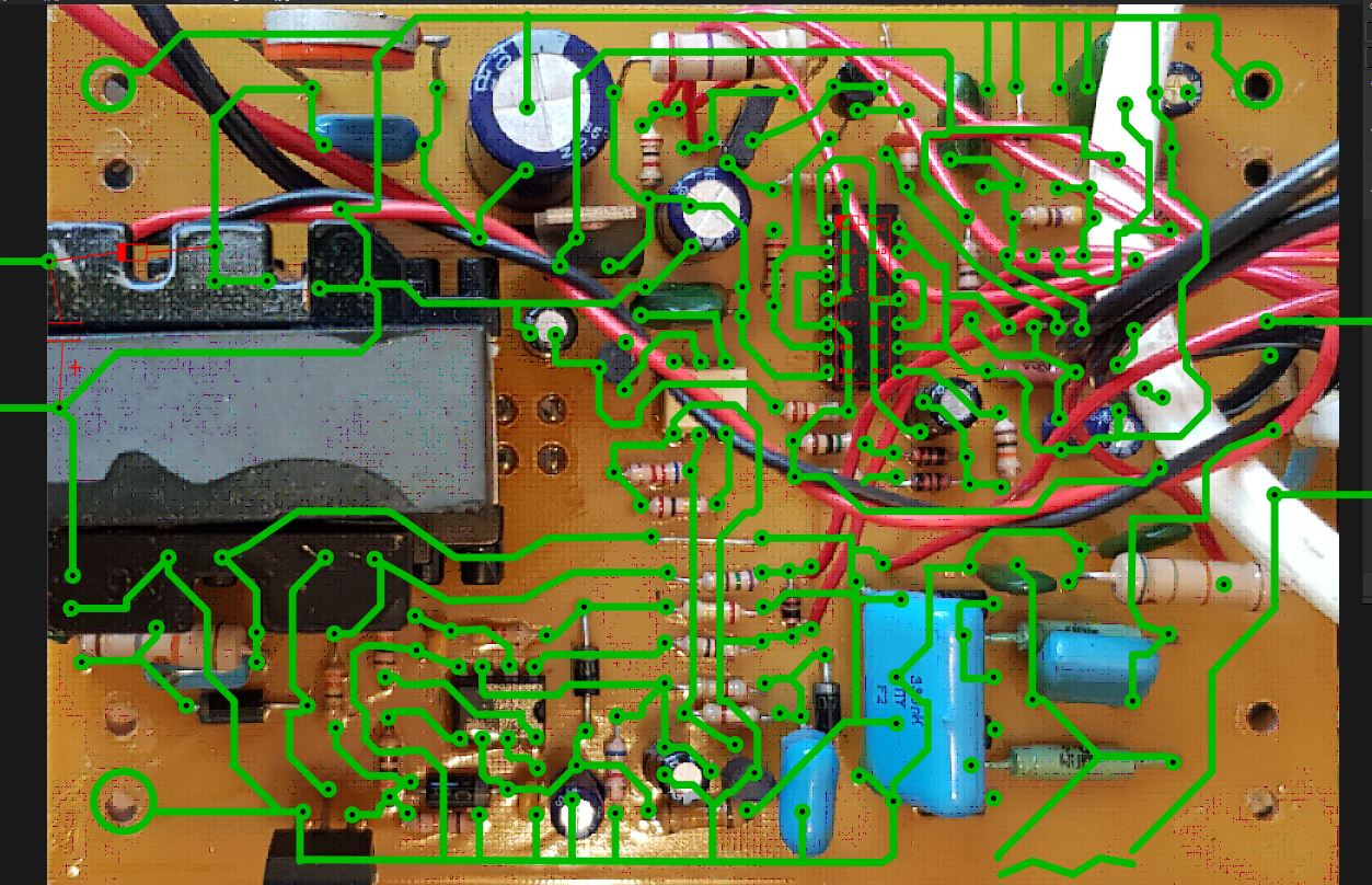 у меня создалось ощущение что на трансформатор неверно подаётся напряжение, не выпрямленное и как то мимо обмоток. Может на микрухе 4605 стоит запрет на запуск? подскажите на какой ноге замерить напряжение? до схемы пока руки не дошли, но как вариант придумал следующее: если листать подряд три картинки ниже, то можно посмотреть дорожки совместил фотографии по размерам.