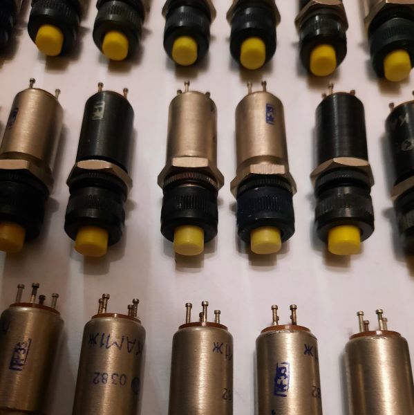 Кнопки: КАМ-1п (прозрачные). В наличии: 13шт КАМ-1ж (жёлтые). В наличии: 36шт КАМ-1к (красные). В наличии: 42шт Цена 250р/шт