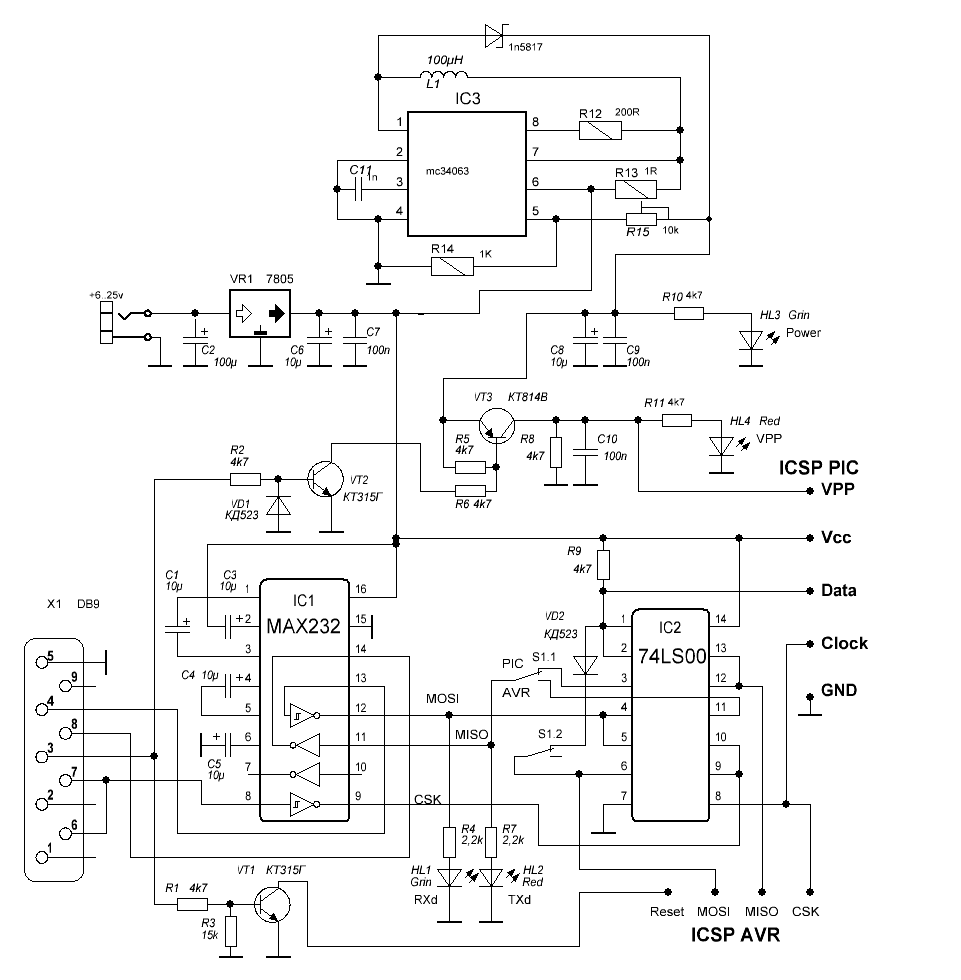 А можеш выложить схему, как подключал ft232rl, полностью от usb до программатора? А то собрал переходник по вот этой схеме, он определяется системой, а программатор не находит. Подключал и через max232 и на прямую к 8535.