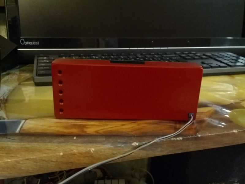 Все собрал в корпус, коробку выпилил с полки от холодильника . Оргстекло тонированное тонировкой, почему красный корпус? - Потому что был дома красный спрей. Прошивку подкорректировал. По кнопке + температура по кнопке - дата, по 2 секунды. Изменил минимальное свечение на 20%. Плавную смену раз в 5 увеличил.