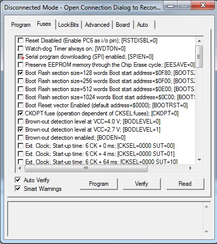 Вопрос знатокам: подскажите и покажите на скринах пожалуйста, как нужно выставить фьюзы в AVRStudio целевого контроллера (того, что стоит в программаторе)?