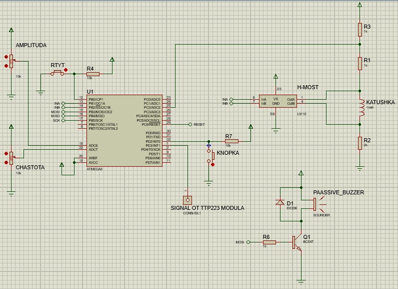 Функционал (как работает): R9 регулировка амплитуты R8 частота SF1 датчик наклона, переключает в "ручной режим" SF2 датчик отключает удочку S3 переключатель режимов , в 3-м режиме меняет продолжительность пауз между колебаниями TTP223 сенсорная кнопка на включение L9110s H мост REL электромагнит 35-40 ом 25-я ножка ловим ЭДС при поклёвке