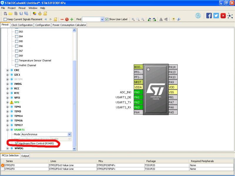 Я, конечно, понимаю, что можно выставить необходимый вывод для управления приемом/передачей самому и дописать его использование, можно самому выставлять разрешение АЦП, но видимо либо я что-то недопонимаю, либо CubeMX еще сырой?