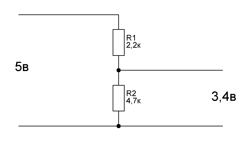 а как согласовать сигнал от меньшего к большему через ризисторы ? в обратку понятно там всё просто