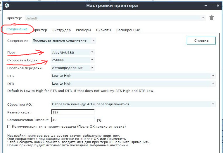 Подключите принтер к ноуту, запустите Repetier-Host. В меню -- Конфигурация >> Настройки принтера. Приведите вкладочки Соединение и Принтер к такому виду: Применить, ОК, естественно Ннну, а теперь попробуйте Подсоединить топнуть
