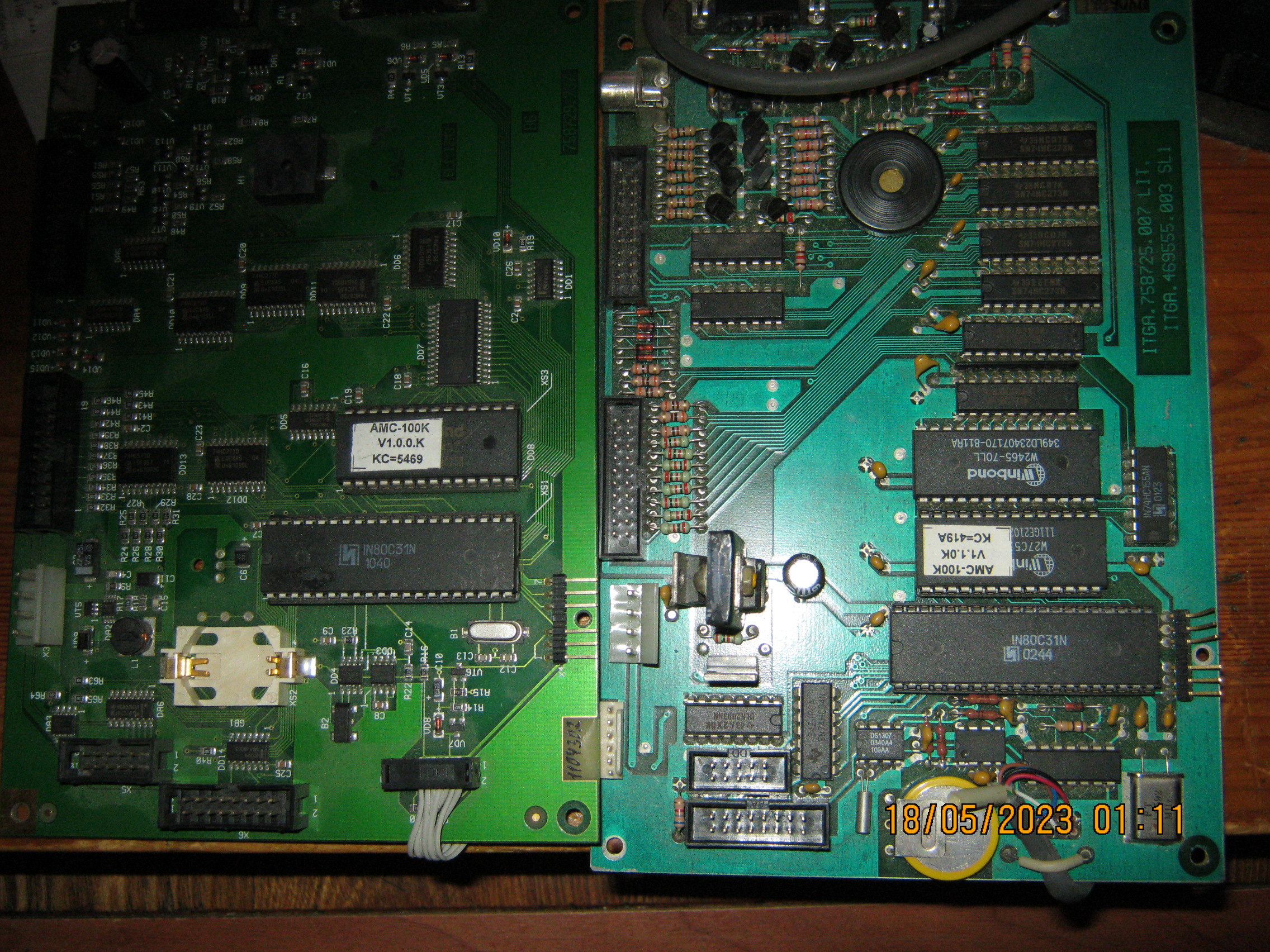 Интересно, а к какому семейству относится микропроцессор типа I80C31? Или I80С32, I80C52? Вот платы от АМС-100К "старого" и "нового" образца- ПЗУха типа W27C512 это электрически перепрограммируемое ПЗУ, TL-866 её знает.. А I80C32 или I80C52 применялись в кассах типа Samsung ER4615** (имхо) это готовый микропроцессорный комплект с периферией- есть и индикация и клавиатура, и управление периферией типа принтера и печатающей головки? и даже часы.. В общем- бери и тренируйся сколько угодно..