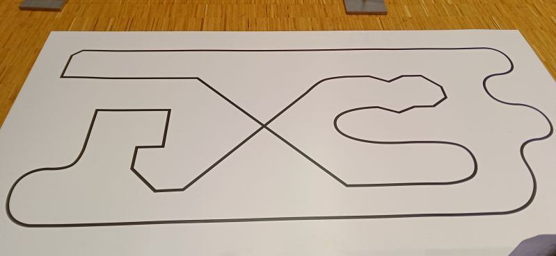 За это время поучаствовал на 3 соревнованиях в дисциплине следования по линии. Всюду, были те же трассы, что и в прошлом году, кроме Прейли - там трасса была очень простая - почти такая же как для Лего роботов, только на одну фигуру больше: Поэтому на этой трассе я не программировал маршрут, а гнал просто с константными параметрами. И результат был плохой. Мало того, что литовские роботы заняли призовые места, еще и уступил роботу из Гулбене две десятых секунды (7.404 и 7.202 до третьего места не хватало целой секунды).