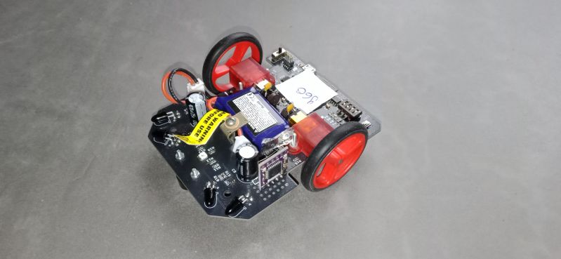 Сборка, зато оказалась весёлой. Если у linefollower робота модуль BGM240 припаялся сразу и без проблем (как и драйвера моторов DRV8838), то тут перепаивал несколько раз. После первого запуска проверил коммуникацию (rx/tx -> CH330 -> USB) - работает. Проверяю контроль напряжения батареи - нет контакта. Отпаял, припаял. Коммуникация работает, батарея работает, переключатель программ - нет. Отпаял-припаял. Коммуникация работает, батарея работает, переключатель программ - работает. Запускаю моторы - кртутят, но всегда в разные сторононы - ага, короткое замыкание сигналов направления вращения. Снова отпаиваем, убираем всё олово, лудим по-новой и припаиваем. Наконец-то всё работает.