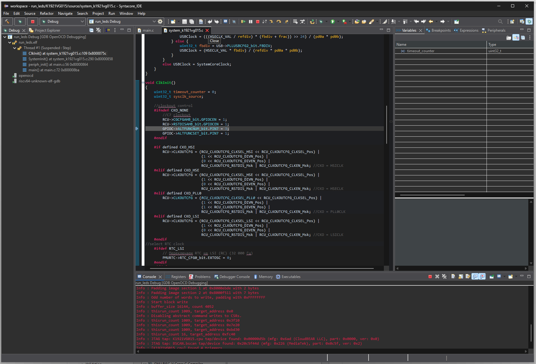 OpenOCD для Федоры пришлось собирать из исходников из ресурса https://gitflic.ru/project/rus_mcu/openocd ВГ015 определился, но прошивка не заливается и на отладку не становится. С компиляцией/сборкой проектов в Синтакоре ИДЕ проблем нет. Надо дальше разбираться