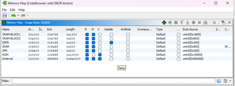После этого я попытался изменить значения в Memory Map, и, как оказалось, многие значения адресов были неверными. Я установил правильные значения, основываясь на документации к этому микроконтроллеру. После этого я повторил автоматический анализ с правильной Memory Map, но это тоже не дало результатов.