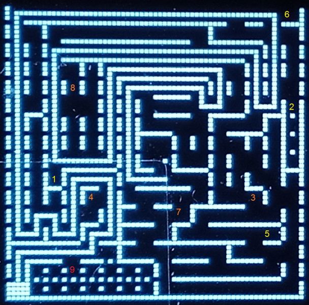 Зато развил модуль предсказаний и возврата по пройденному маршруту. В предсказания добавил возможность избегать тупики. Если по данным исследования соседних ячеек известно, что впереди будут ячейки с двумя стенами и в конце с тремя стенами (тупик), то весь этот ход объявляется тупиком и робот туда суваться не будет. Вот для примера: Справа исходный лабиринт, слева как его будет видеть робот после исследования. Желтыми цифрами отмечены ячейки куда робот не заходил благодаря этому модулю прогнозирования тупиков. Примечателен тупик "2" - нам не интересно как далеко туда можно пройти, так как всё-равно окажемся в тупике. Тупик под номером 5 (для меня) интересен тем, что он был заблокирован при виртуальном движении назад. Когда робот первый раз подошел к той развилке, наличие стены в конце ячейки не было известно и при возвращении его следовало бы посетить, но когда робот начал возвращаться - наличие стены у той ячейки стало известно и путь назад расчитывался уже зная что там тупик и не посещая ту развилку второй раз. Это сэкономило очень длинный кусок хода назад! Оранжевыми цифрами отмечены ячейки которые не посещались, так как по алгоритму Люка-Тремо нужно было бы вернуться. И если кусок "8" был сделан давно (явный прямой ход без вариантов), то я еще добавил обработку и поворотов, за счет чего появилась блокировка "3", "4" и "7". Кстати, тут нет такой ситуации, но "изогнутые" тупики также обрабатываются. Ну а участок "9" не посещался, так как к моменту, когда его следовало бы посетить, алгоритм нашел, что он уже ни на что не влияет.