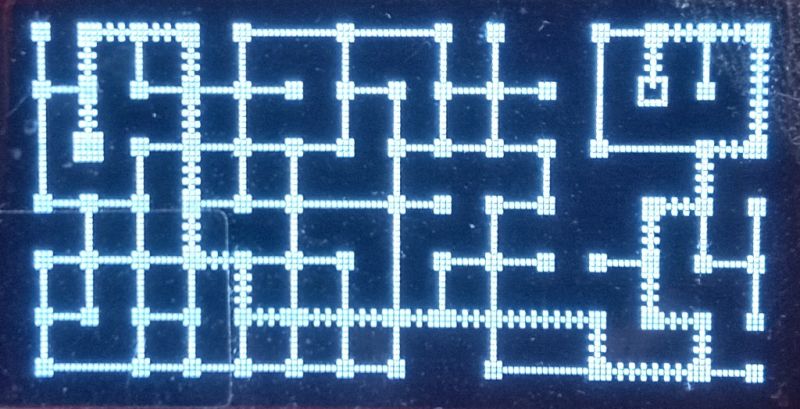 Пока нахожусь в ступоре, ко мне приехал OLED дисплейчик с разрешаловкой 128*128. Правда RGB. И я попытался его оживить. Конечно пришлось здорово повозиться, но картинки показывать я его заставил: На таком дисплее лабиринт отображается куда внятнее. Но вот только пока еще не решил на какой робот его прикручивать. Да и есть проблемы - надо будет переписывать весь вывод. Сейчас у меня всё изображение формируется в ОЗУ и потом весь кадр заливается в дисплей. Здесь я так поступить не могу, так весь экран занимает 32 килобайта, а у MSP432 DMA может за раз переслать всего 1 килобайт. Можно было бы его поставить на робот с EFM32 - там есть 2D трансфер, но у этого дисплея надо чтобы команда передавалась с низким уровнем на выводе DC, а параметры команды с высоким (в отличии от SSD1306, у которой команда и параметры передаются с одинаковым уровнем). Поэтому передача данных там довольно муторное дело. Надо было покупать не RGB, а Ч/Б дисплей на SSD1327. Но они почему-то дороже этого цветного...