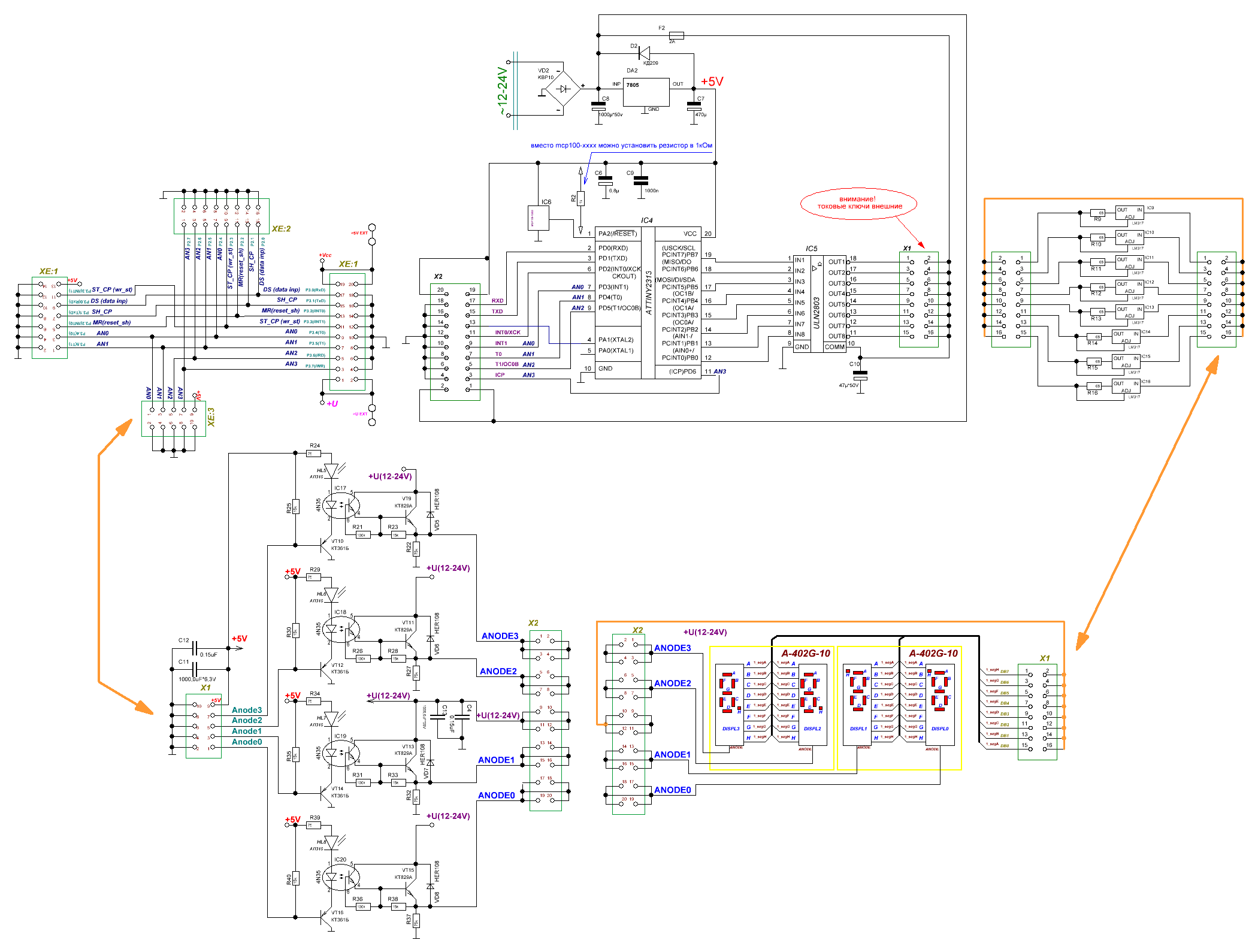 Размер сегментов дисплея не ограничен. Минимальная конфигурация 4 позиции. Номинальная 4 строки по 8 позиций (несколько измененная схема с регистровым файл-расширителем). Максимум ... на сколько интереса будет - светики тоже не дешовое удовольствие. Для начала очередная цель прицепить туды канал связи и сцепить с компом и/или тем индикативным термометром на пичке или внешней мордой на базовом блоке...