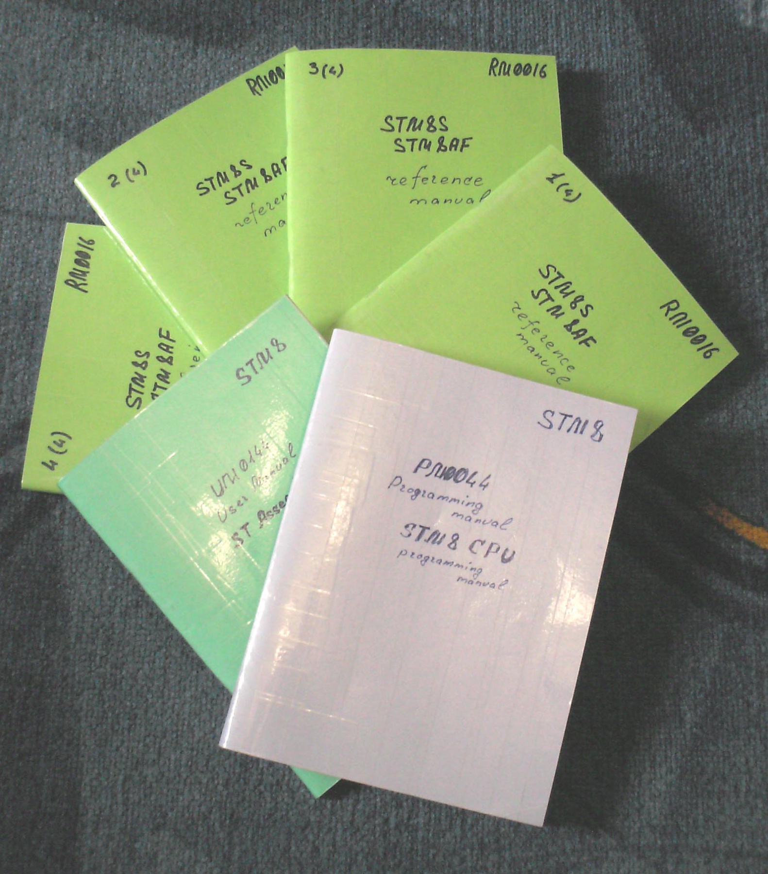 Уммррр... Наконец закончил изготовление РТМ (референс ноте) к тому STM8S/AF http://img.radiokot.ru/files/20529/ors7a3rl3.jpg теперь хош можно беглое знакомство с аппаратно/периферийными примочками сделать. Бум почитамс биллетристику... Но сие только для "вступительного знакомства" сгодится ибо там еще два раздела пр программированию флеша и протоколу swim да по каждой микрухе свой даташит с дополнением по обнаруженным ерратам -то уже конкретика под программу и схемотехнику.