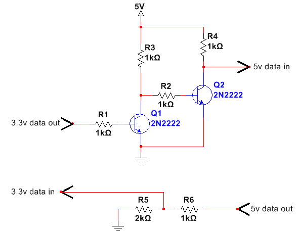 Ннну, Upgrader, если уж совсем попроще ... У TTL логики (5 В) и LVTTL (3,3 В) практически одинаковые уровни лог.0 и лог.1, так-что прямое подключение действительно работает. Только вот я бы если и подал бы Tx(LVTTL) напрямую на Rx(TTL), то для Tx(TTL) на Rx(LVTTL) всё-таки использовал бы делитель (как на нижнем кусочке верхней схемы), так ... на всякий случай