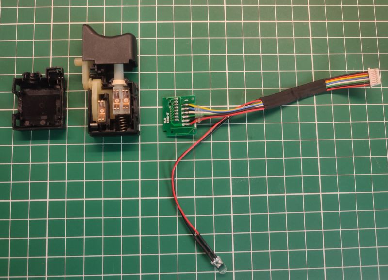 Serzh2000, у болгарочных есть 2 контакта пуска, если замкнуть он включается. Это для тех болгарок где нет силового выключателя. Хотя вроде бы всегда эти 2 контакта есть и у шуруповёрта тоже. Кнопка при нажатии понижает скорость, а ещё раз нажать ещё понижает и на этом всё. После выключения он стартует на полную.