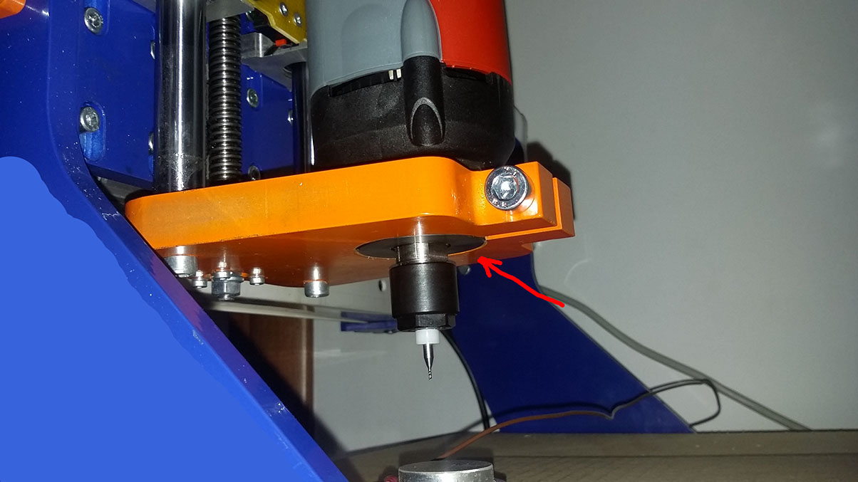 1. Как ни старался я, а шпиндель Kress не залезает до конца в держатель. На фото показано красными стрелками, что шейка шпинделя выступает над оранжевым держателем почти на сантиметр, внизу же при этом шейка шпинделя находится ровно на уровне держателя. Может быть, так и задумано, и шпиндель не обязательно заталкивать до упора?