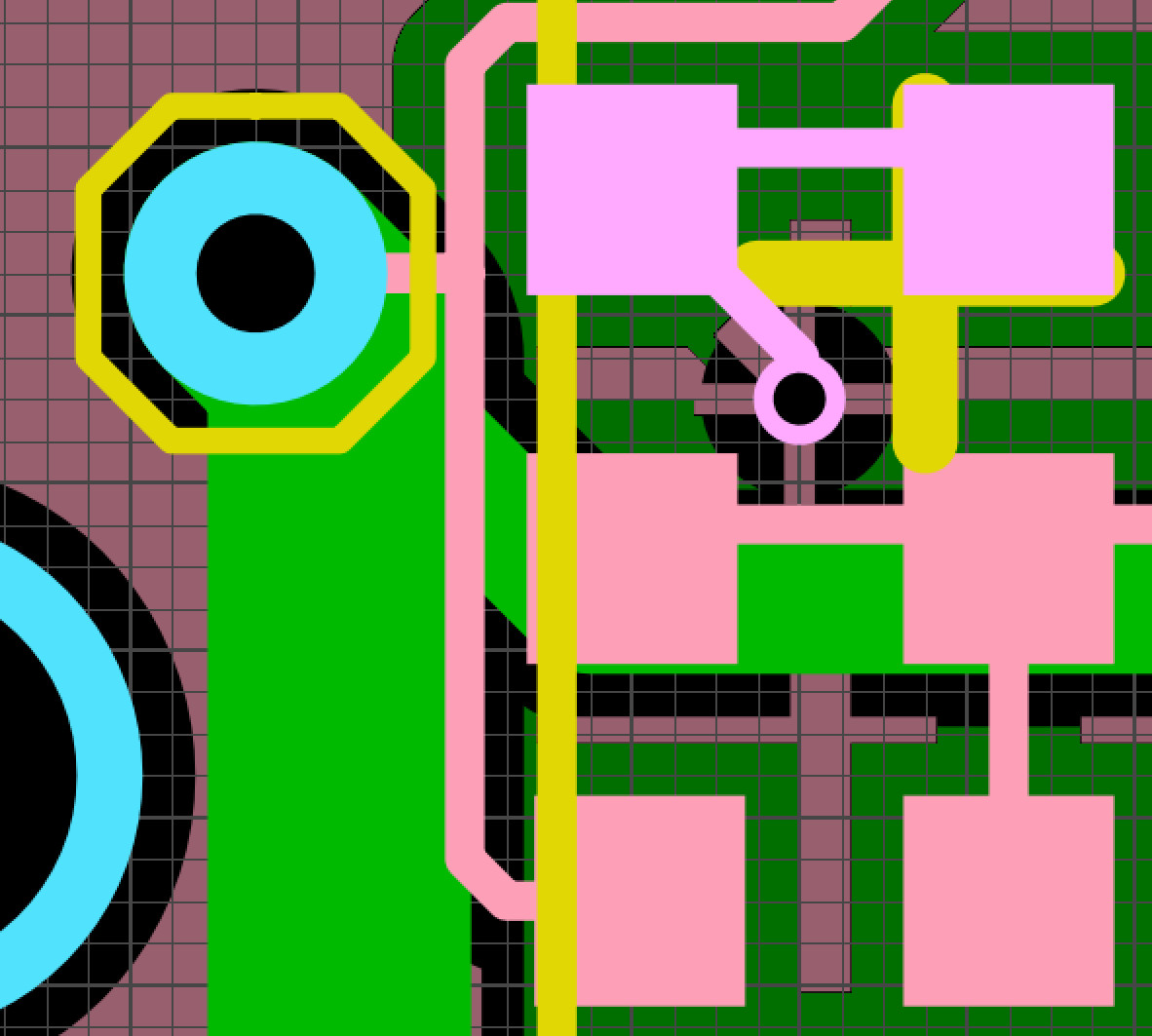 Глюк проверки в Sprint Layout. Как можно убедится по фото, автопроверка не обнаружила, что термобарьер у отверстия соприкасается с дорожкой. Но в изготовленной плате, отлично соприкасается. Всё это вылилось в потерянное время и деньги...