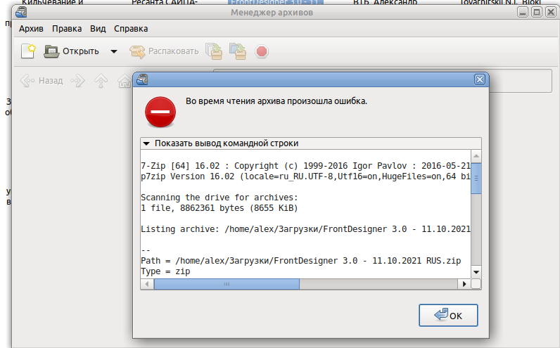 Архив скорее всего заточен под винду плюс пароль, линуксовский энгрампа воспринимает архив с ошибкой, все остальные виды архивов линуха открывает без проблем!