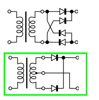 Вот по этой схеме выпрямитель собран. Внизу зелёным обведёна.