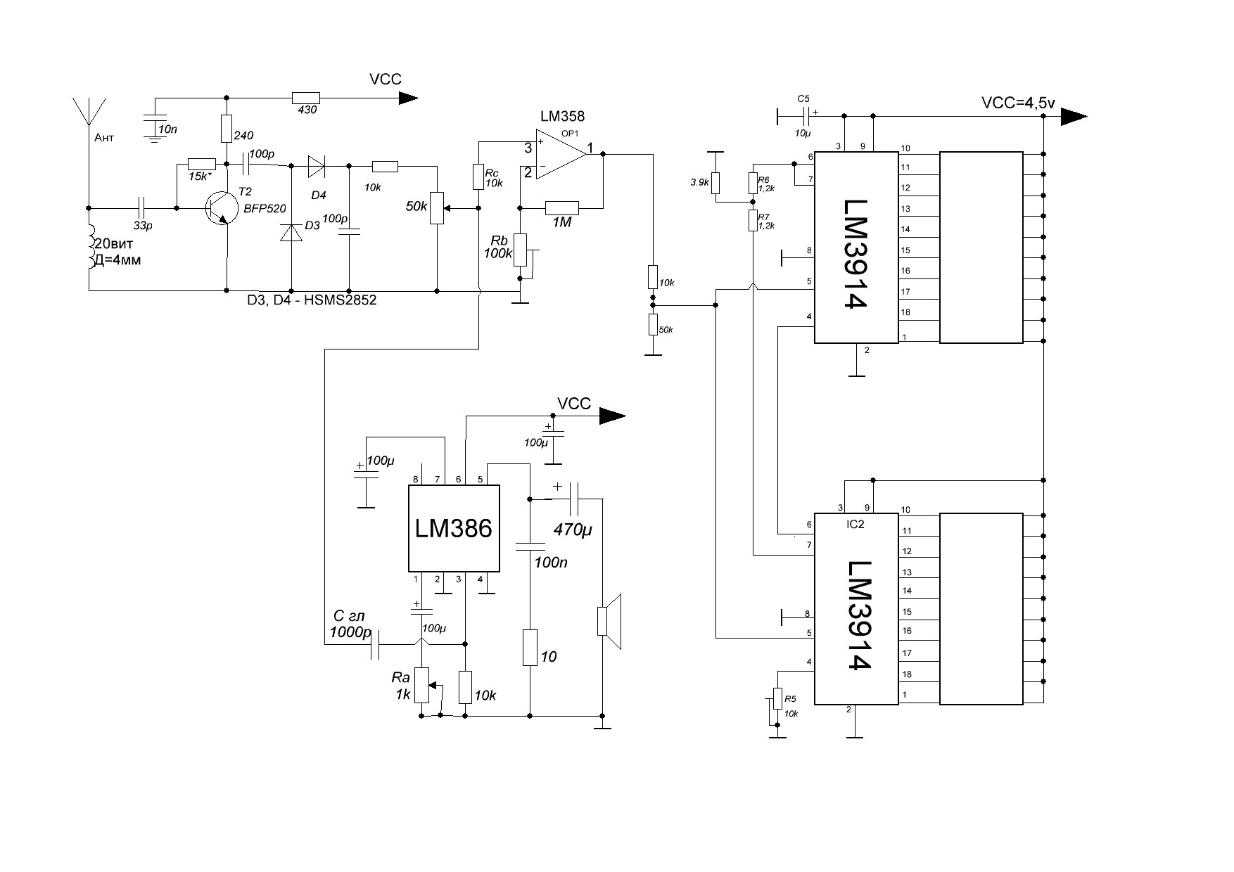 Вот ЭТУ, но только с десятком светиков на одной lm3914. Делаю для себя. Использую корпус от секундомера, места по площади немного, думал на модули разбить. Питание для УВЧ 9В ?