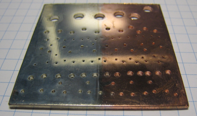 Замесил нового электролита, попробовал процесс J-Plate 400, с ним все просто замечательно! Металлизация в отверстиях значительно менее зернистая, даже блестящаая. ИСЧЕЗЛИ ТЯНУЧКИ !!! Это неоспоримое преимушество. Поверхность чуть менее блестящая, не настолько вызывающая как у Chemeta. Недостатком посчитал необходимость вынимать аноды из электролита. В медном электролите аноды провисели три недели, не заметил что что-то с ними произошло. Здесь же за полдня они покрылись сероватым налетом,который при гальванике стал чашуйками отваливаться. Наверно сам виноват, в спешке обсчитался, заложил десятикратную дозу NaCl. Электролит откорректирую, думаю будет только лучше. З.Ы. Отдам в хорошие руки 8 литров электролита с блеском Chemeta RV-T, в свою тару. Если нужно фотки - позже.