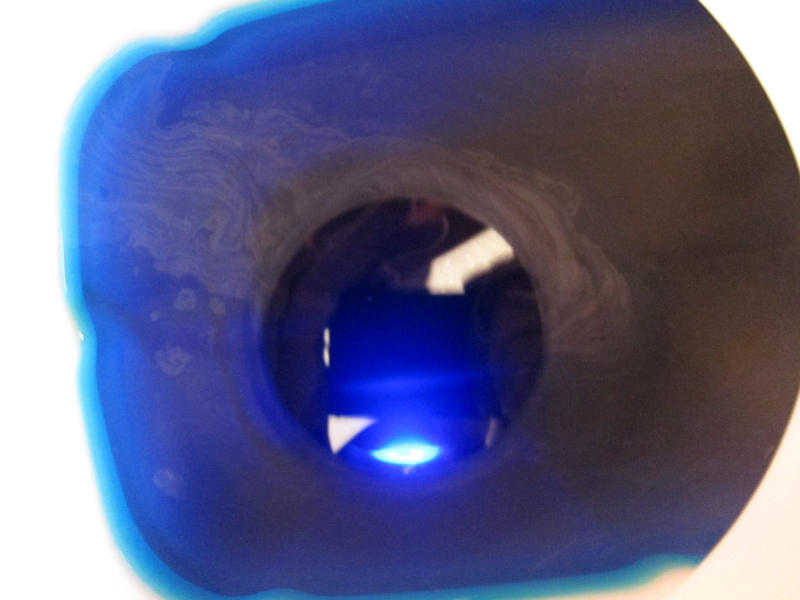 На фото слева испорченный серо-синеватый раствор, справа в банке, разбавленный просто водой, на банке висит платка, все работает.