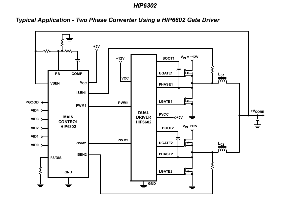 add. почитал датащиты на материнки, у контроллеров HIP6302 в схеме с драйвером HIP6601 есть выход 12в но на полевики идет только 5в, очень грустно подходящих микросхем не нашел в коллекции хлама