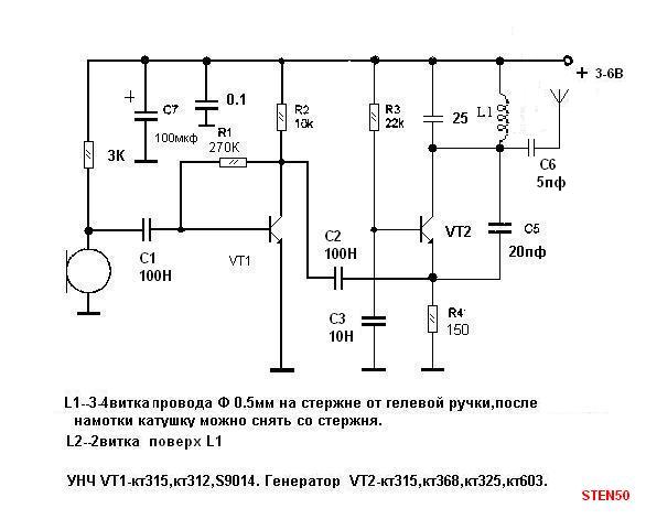 Здравствуйте, не хотел создавать тему, я думаю тут будет вполне уместно, есть вопрос по схеме простенького fm трансмиттера. Моих знаний хватило только на то чтобы правильно собрать, но как только возникла проблема нужна помощь знающих людей. Схема уже была приведена RA3WSI или похожая, она рассчитана как радиомикрофон я вместо микрофона подсоединяю вход с источника. Так вот в чём проблема, транслирует жуткий гул параллельно сигналу, как я понимаю я где-то упустил массу. Т.к. это моя первая собранная схема я не понимаю куда и как эту массу добавит? Помогите разобраться. Вот сама схема [spoiler]