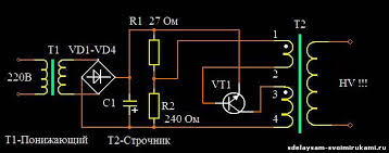 Вот намотал примерно витков 3000 если не больше ,не считал просто ) на верх смотал 5 витков толстого провода и 25 тонкого ,подключил к блокинг-генератору и ничего . Слышно только как транс пишит .А дуги нету ,воообще ,никакой. Брался за выводы вторички,писк менялся ,можно даже было музыку играть на нем )))И кстати ,не только мой не работал ,еще не работал который я с телика вытащил ,он тоже пищел ,но не было дуги. Я в растерянности ))В схеме 2 резистора 280 ом(точно не уверен,но вроде столько ,но не больше 300) и 33 ом. Конденсатор на 1000мкф 25 в. Транзистор кт805ам. (есть 808а и 803а может с ними что получиться ???)