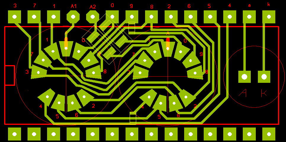 все собственно хорошо - да вот проблема - загораются левые индикаторы (тоесть скажем если на часа 0.00.21 то на лампах часов и минут кроме нуля видна двойка или единичка - тускло но видна ) грешу на разводку платы - плата двухсторонняя и дорожки катодов идут очень близко друг к другу и параллельно