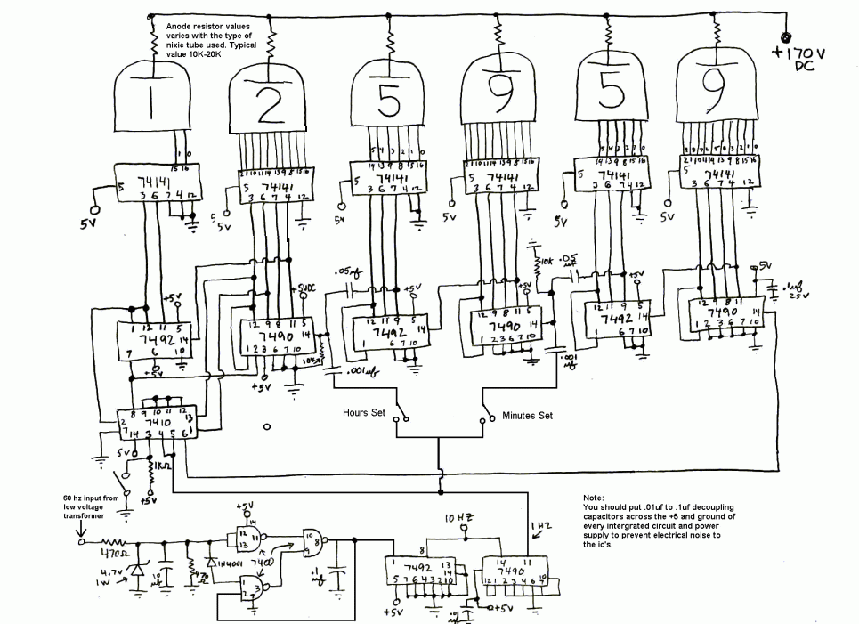 При слишком большой частоте сканирования ламп начинают светиться соседние цифры в лампе.