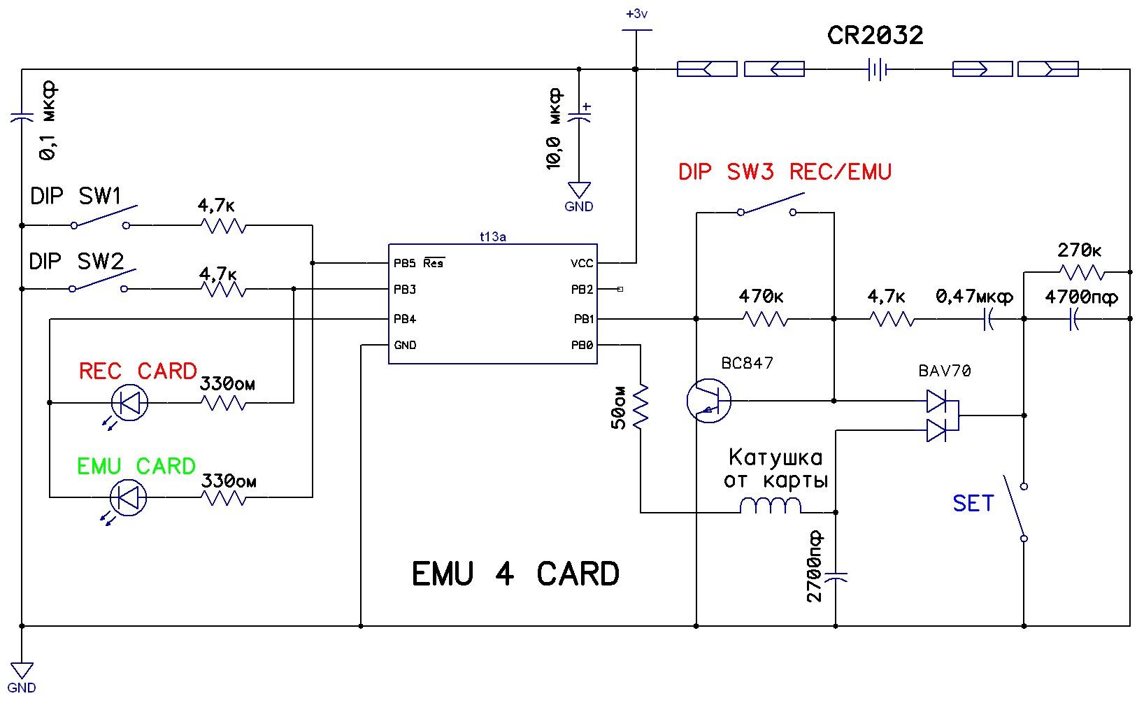 3 вольта, как он сказал это эмулятор 8 карточек, сама в себя записывает поднесённую карту.
