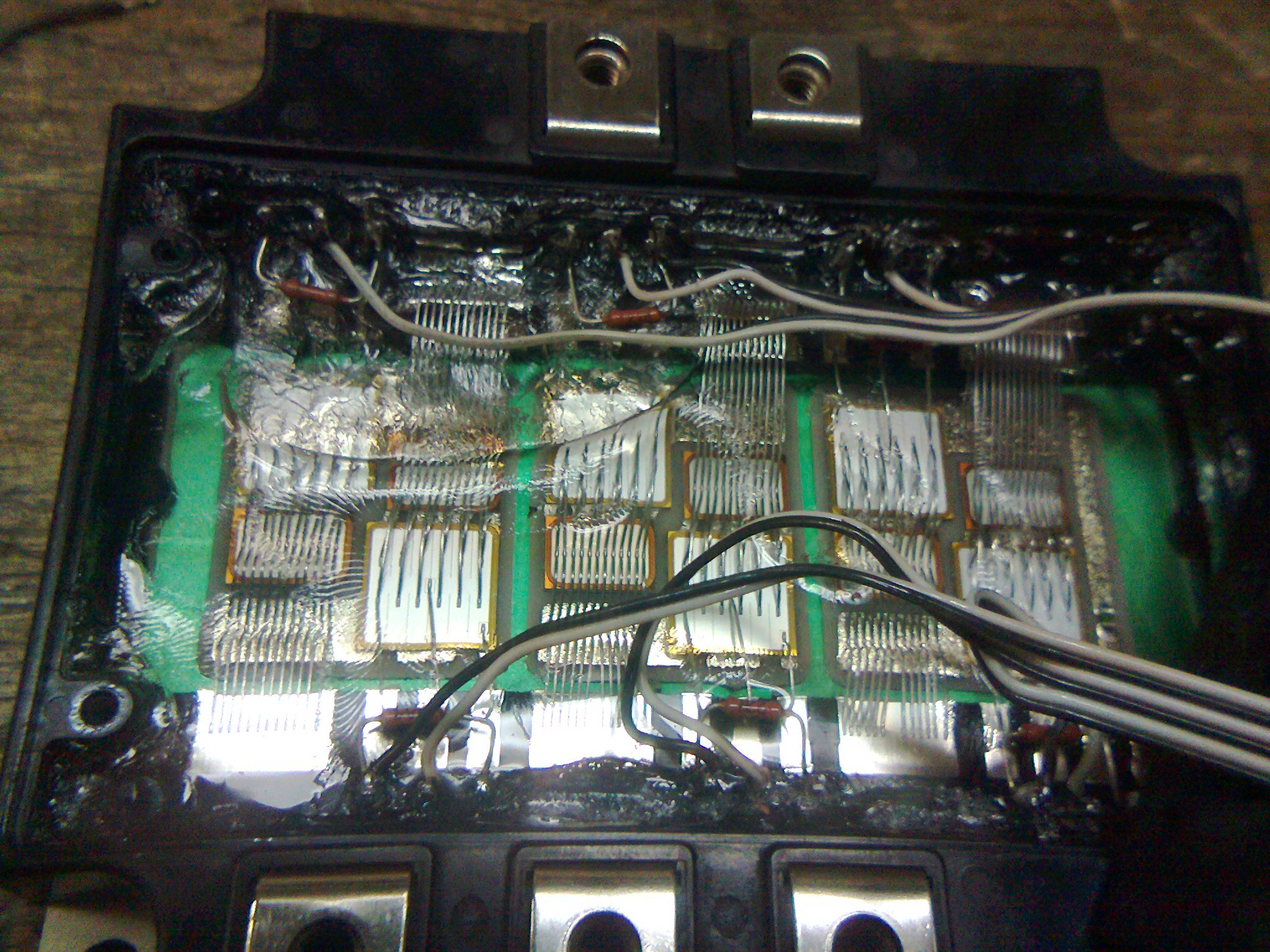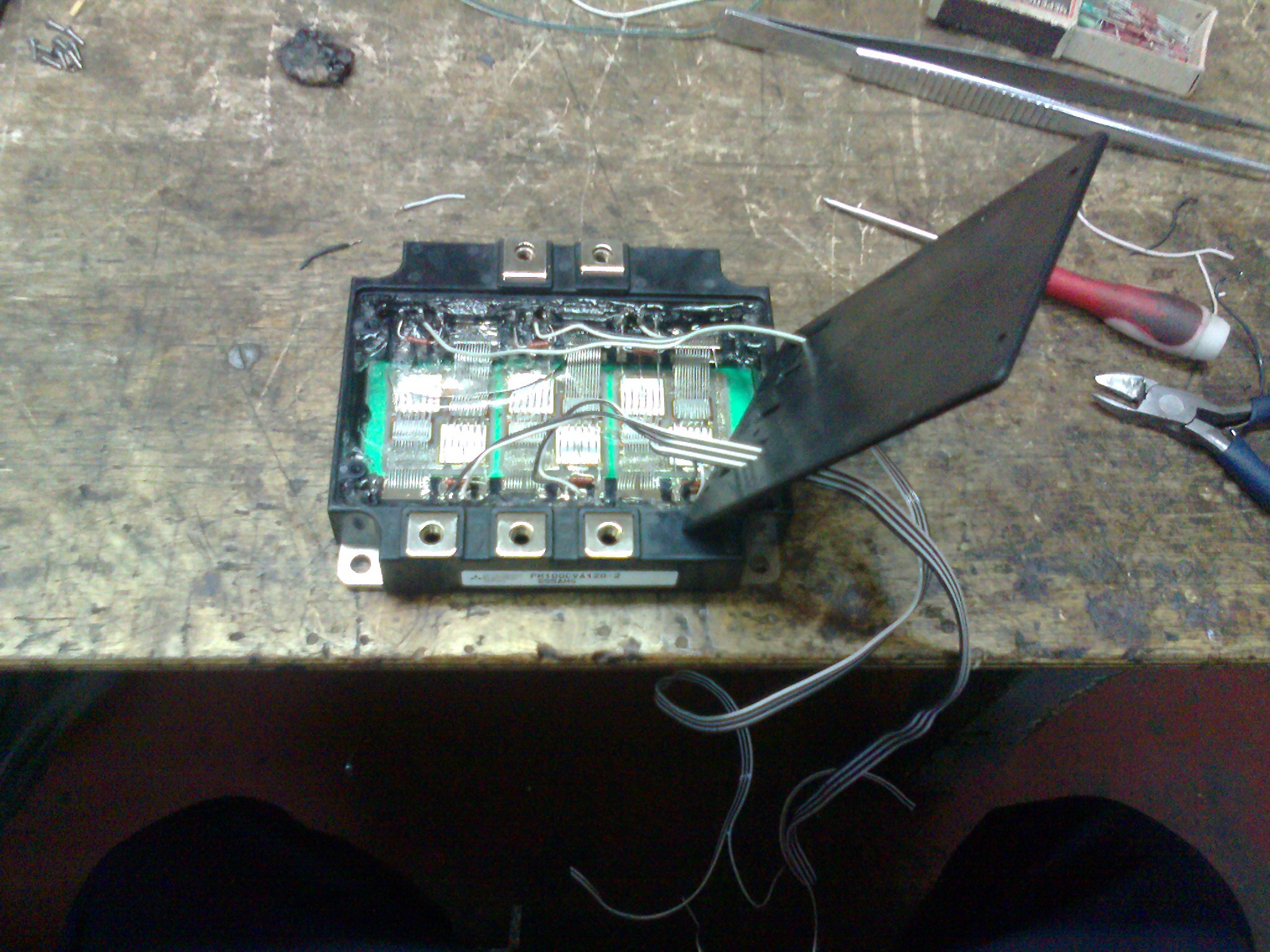 Раздербанил и прикошачил попавшийся японский IGBT модуль на 100А к своей плате управления. снял крышку выкинул лишнее припаял выводы Запуск успешен