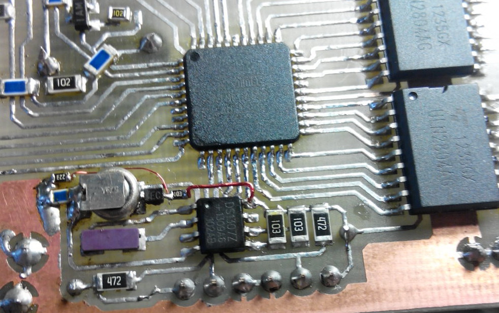 Убрал ионистор и поставил литиевый аккум с мобилки (backup battery) кварц тоже с мобильного, теперь на лицевой стороне остались только кнопки, разъём питания и пищик