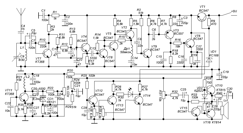 Да неинтересно на современной базе. Нет в ней ничего для души. Я вот от нечего делать и просто ради интереса сейчас сижу и такой паяю, только на современных транзисторах и питанием от кроны. Промежуточная частота где то порядка 120 КГц