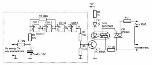 использую схему а) .очень хорошие показатели при минимальной освещенности (особенно при подключении двух фототранзисторов в параллель . но вот выход ОУ хочу завести на таймер который бы делал задержку от 1 до 5 минут (как на включение так и на отключение) для того что бы избежать дребезга