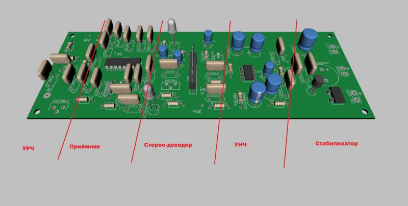 решил сделать себе ФМ приёмник в мастерскую, выбор пал на к174ха34 как наиболее для меня доступную, + захотелось стереодекодер, унч и стабилизатор, скомпоновать всё решил на 1ной плате (не знаю правильно или нет но сделал так)