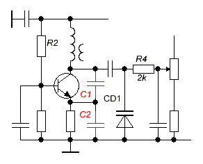 В более качественных приемниках применяют сопряжение в двух точках. В этом случае добиваются точного сопряжения на концах диапазона. При этом в середине диапазона получается ошибка, но эту ошибку можно сделать меньше, чем в случае сопряжения в одной точке. Что бы получить сопряжение в двух точках в нашем случае в контуре УВЧ добавляют подстроечный конденсатор. Этим конденсатором добиваются точного сопряжения в верхней части диапазона, а изменением индуктивности контура УВЧ добиваются точного сопряжения в нижней части диапазона. Желается это методом последовательного приближения. Сначала устанавливают катушкой в нижнем конце диапазона. Потом с помощью подстроечного конденсатора в верхнем конце и это повторяют несколько раз.