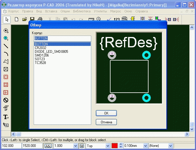 Подскажите, как повернуть надпись элемента, и вписать его в плату. P-CAD 2006